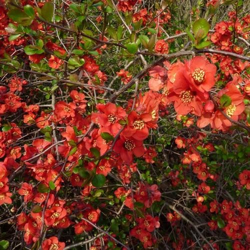 Chaenomeles superba ‚Crimson and Gold‘